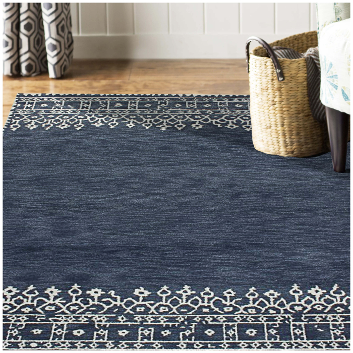 Description / Twistbarn Desa Solid & Striped Indigo Handmade Wool Area Rug 8' x 10'